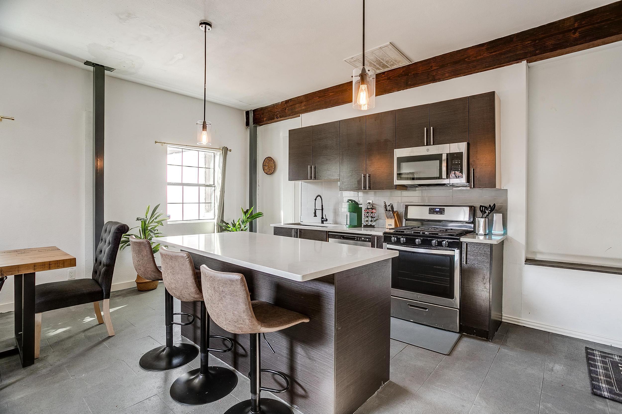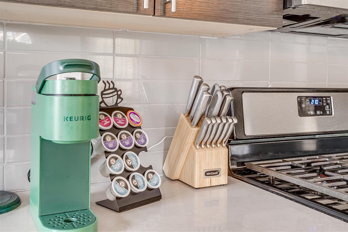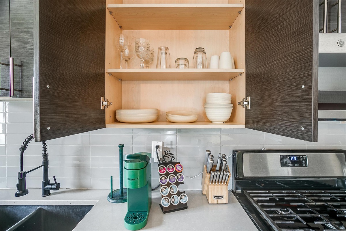 - Appliances (fridge, stove/oven, microwave, dishwasher, Keurig)