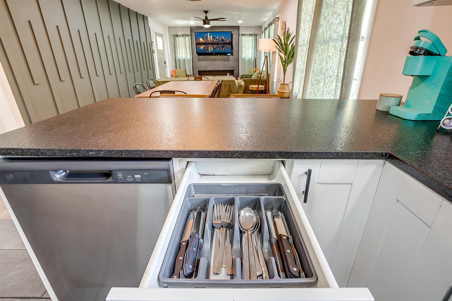 - Appliances (fridge, stove/oven, microwave, dishwasher, Keurig)